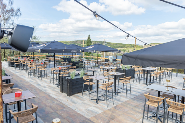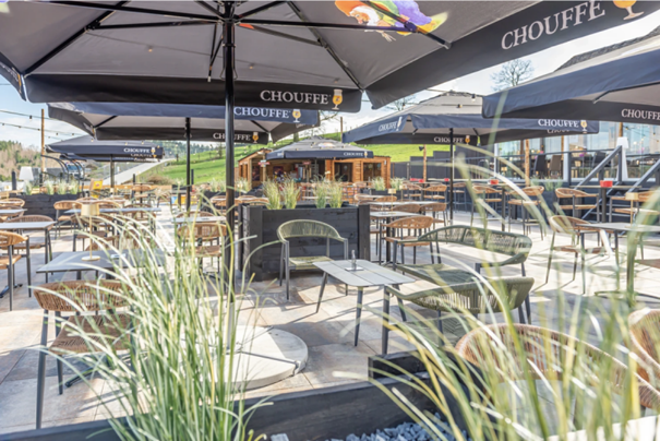 Daarnaast is er het buitenchalet Terras & Bar “Cheers & Chill”, perfect voor het proeven van lokale biertjes en huisgemaakte cocktails terwijl je geniet van het panoramische uitzicht.